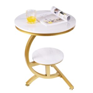 • Round Marble Glam Side Table with Gold Iron Frame