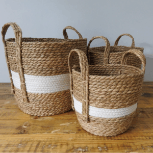 Natural and White Stripe Basket