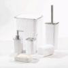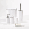 Declutter your bathroom effortlessly with our thoughtfully curated set. The stylish trash can, discreet toilet brush holder, hygienic toothbrush holder, comfortable cup, and convenient soap dispenser and dish keep your essentials tidy and within reach.