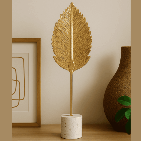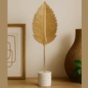 nMODERN DESIGN This modern iron sculpture in gold will look great in any living room. The concise shape of this golden leaf with its fine textures is an eye-catcher in your home