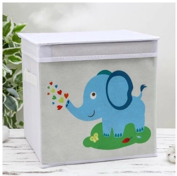 nA cute and colorful foldable storage box featuring a playful elephant design, perfect for kids’ rooms. Ideal for storing toys, clothes, books, or accessories while adding a fun touch to the space. Lightweight and easy to organize.