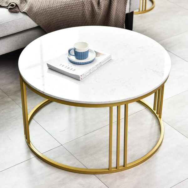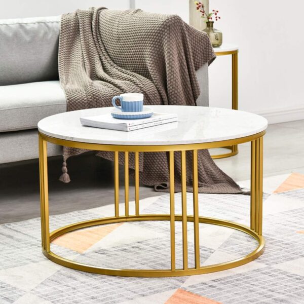 nNatural marble and Robust Metal Frame. Achieving a modern taste of look that will go well with a variety of home dΓ©cor. It can be used as dining table, coffee table, snack table, side table, reading table in home and office. With the smooth surface, you can easily clean the coffee table with a soft damp cloth.
